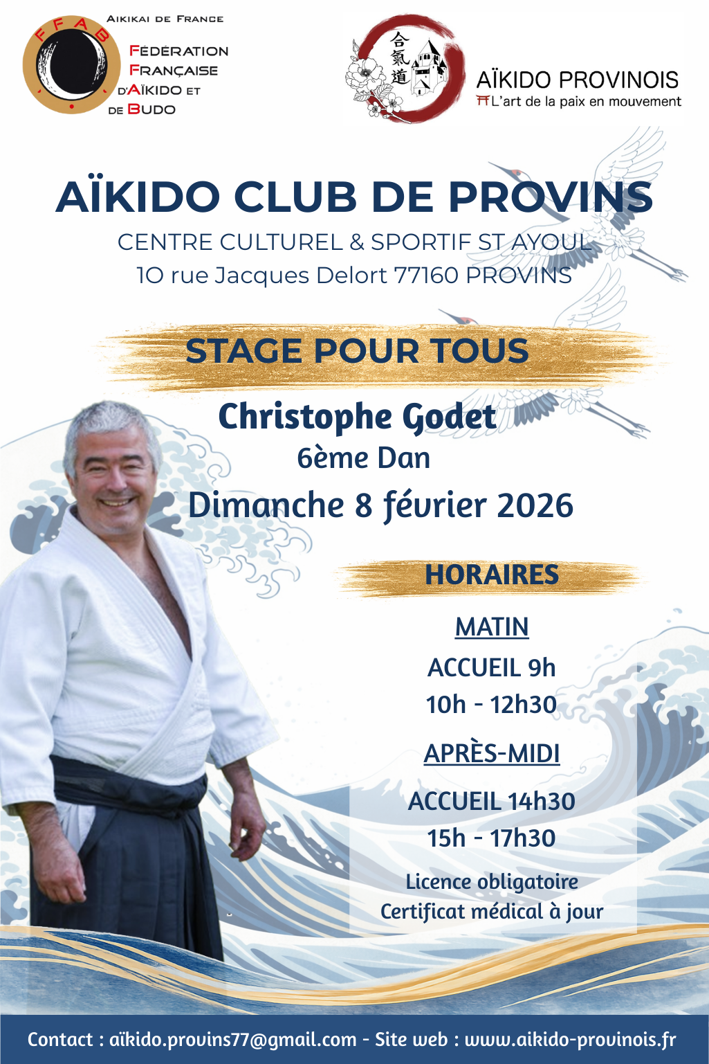 L’Aïkido Club de Provins a le plaisir d’accueillir Christophe Godet, 6ᵉ dan d’aïkido, pour un stage exceptionnel et gratuit.